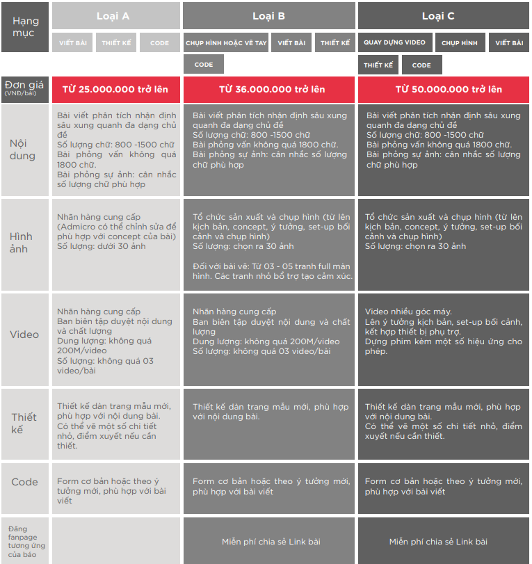 Chi phí sản xuất không bao gồm chi phí đăng tin. Vị trí đăng trên trang tùy chọn theo ngân sách của nhãn hàng và theo báo giá PR Solutions.
