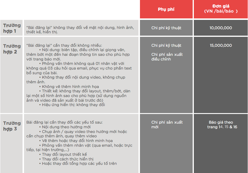 Lưu ý: Chi phí vị trí đăng tin theo báo giá PR Solutions của trang báo / website mới