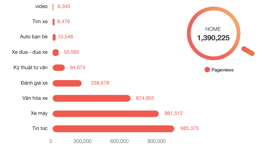 Hàng tháng, AutoPro thu hút gần 1,5 triệu lượt người ghé thăm trong đó có 633,444 lượt người ghé thăm trang thường xuyên, hown 4,3 triệu lượt tổng views bài viết với 3 phút 22 giây là thời gian trung bình người đọc ở lại trang. Những độc giả của AutoPro là những người chơi xe, am hiểu xe, những người muốn mua ô tô – xe máy. Vậy nên, quảng cáo về thương hiệu ô tô, xe máy hay giới thiệu những sản phẩm mới của hãng ô tô, xe máy, phụ kiện xe dưới dạng bài viết PR trên AutoPro là cách quảng cáo vô cùng tự nhiên, thu hút độc giả.