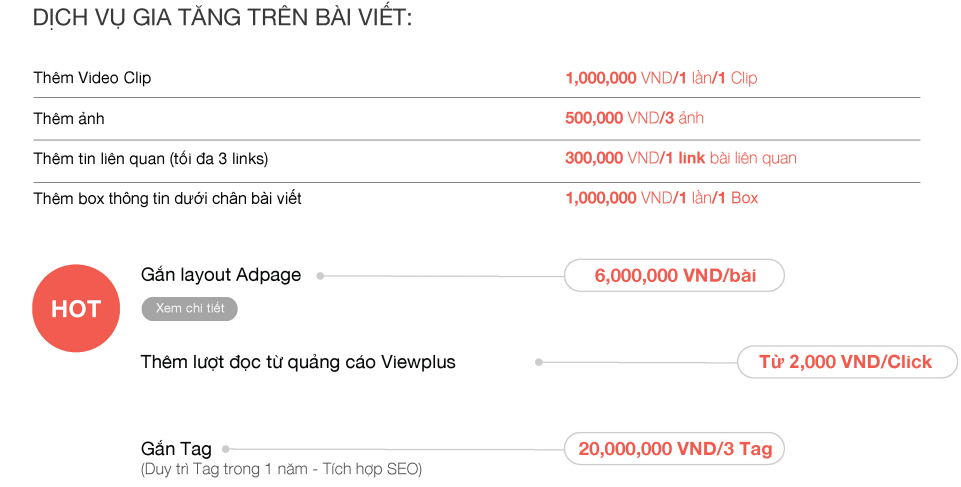 Báo giá bài PR AutoPro cũng đưa ra một số dịch vụ gia tăng trên bài viết, khách hàng muốn thêm dịch vụ nào thì bên AutoPro cũng có thể đáp ứng nhu cầu của khách hàng. Tùy vào nguyện vọng và chiến lược của từng thương hiệu. Giá cuar dịch vụ gia tăng bài PR của AutoPro hiện đang được áp dụng như sau: