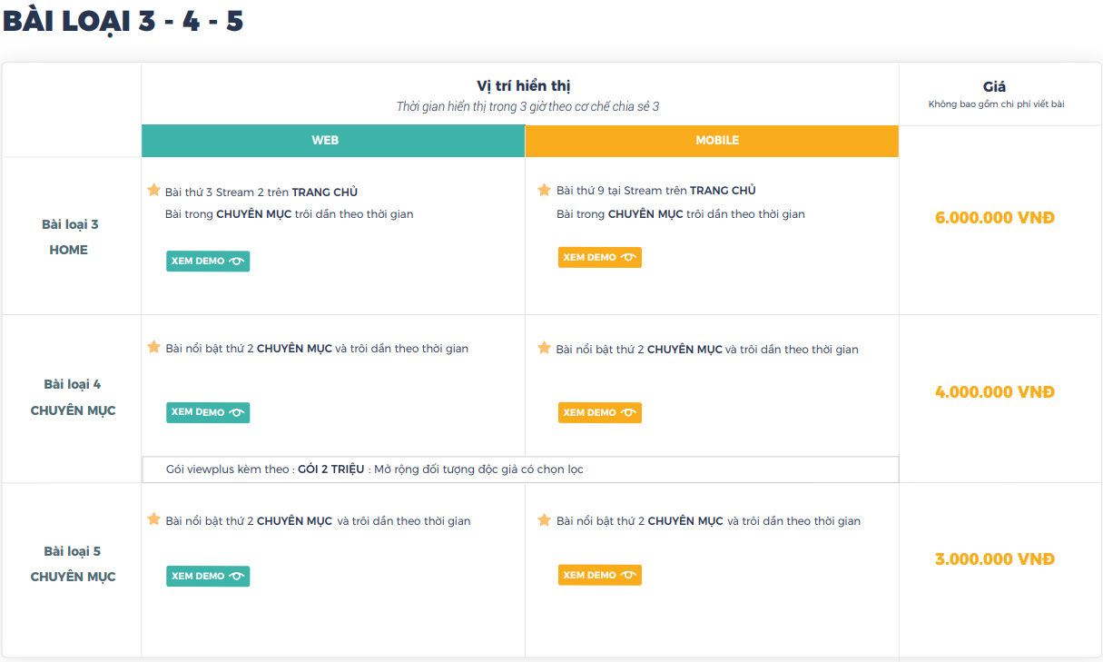 Báo giá bài PR loại 3-4-5 trên GenK.