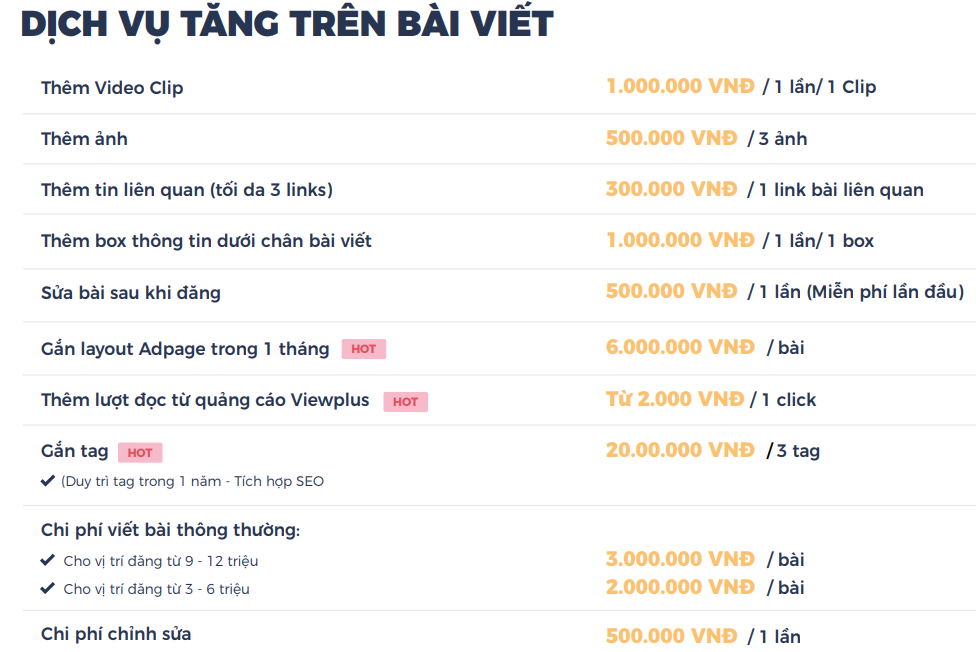 Thêm vào đó báo giá bài PR GenK cũng có những dịch vụ “hot” được các thương hiệu ưa chuộng sử dụng đó là Gắn layout Adpage, Thêm lượt đọc từ quảng cáo Viewplus, Gắn Tag và ViewPlus.