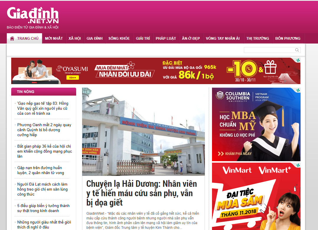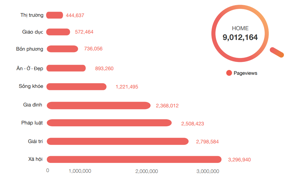 Giađình.net.vn – Báo điện tử Gia đình và Xã hội hiện có 9 chuyên mục, trong đó lượng Traffic lớn nhất đến từ chuyên mục Xã hội. Đây là chuyên mục cung cấp những tin tức nóng hổi nhất về thời sự trong nước và quốc tế, giúp các độc giả có được những thông tin nhanh chóng. Chính vì thế, chuyên mục này đã trở thành chuyên mục “hot” của Giađình.net.vn với hơn 3,2 triệu PageViews.