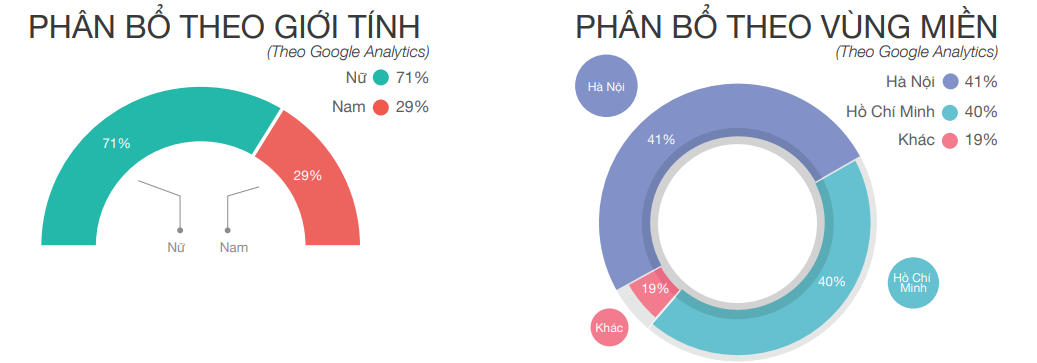 Theo phân bổ giới tính, trang Báo điện tử Gia đình và Xã hội Giađình.net.vn thu hút phần lớn là nữ giới chiếm 71%, còn lại 29% là nữ giới. 2 Thành phố lớn của nước ta – Hồ Chí Minh và Hà Nội là hai thành phố có tỉ lệ người đọc đông đảo nhất chiếm lần lượt 40% và 41%, các tỉnh khác chiếm con số 19%.