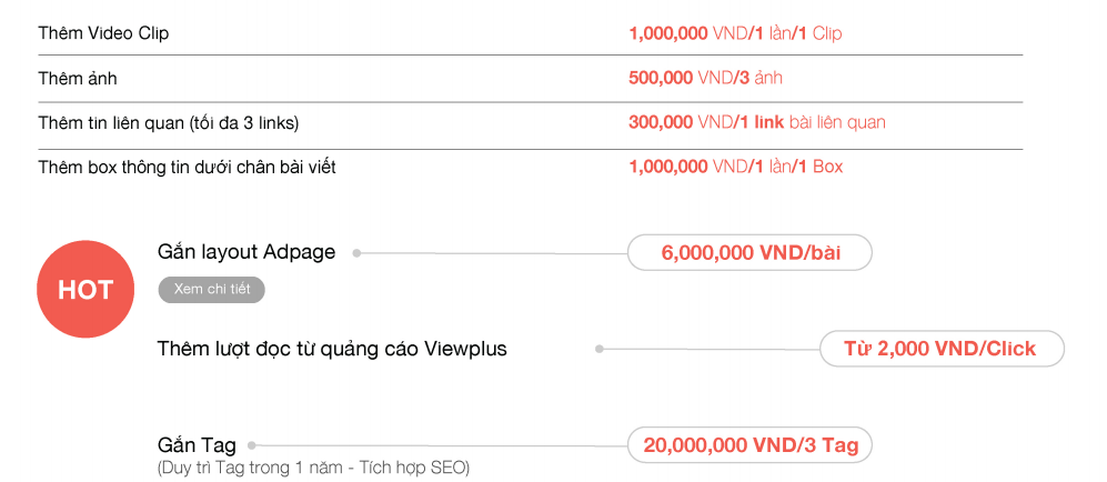 Thêm vào đó báo giá bài PR Giađình.net.vn cũng cho biết  những dịch vụ “hot” được các thương hiệu ưa chuộng sử dụng đó là Gắn layout Adpage, Thêm lượt đọc từ quảng cáo Viewplus, Gắn Tag.