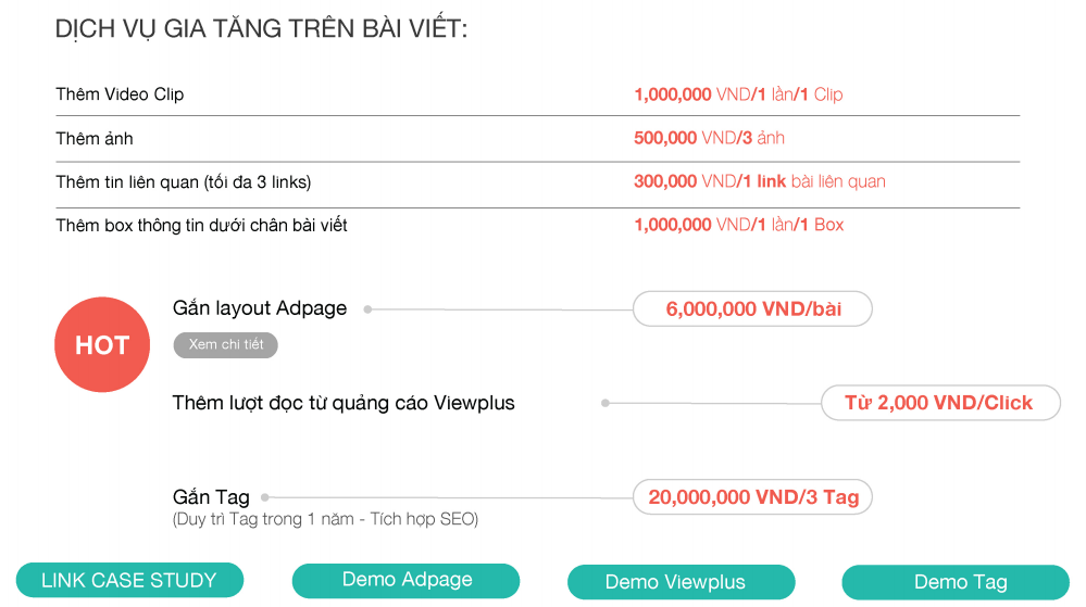 Giá của các dịch vụ gia tăng trên bài viết PR trên Dân Trí hiện đang được áp dụng như sau:
