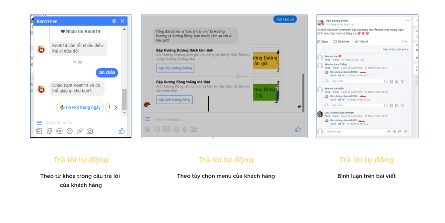 +Sử dụng kịch bản trả lời tự động, rút ngắn thời gian tư vấn như: Hỏi giá, tư vấn sản phẩm..