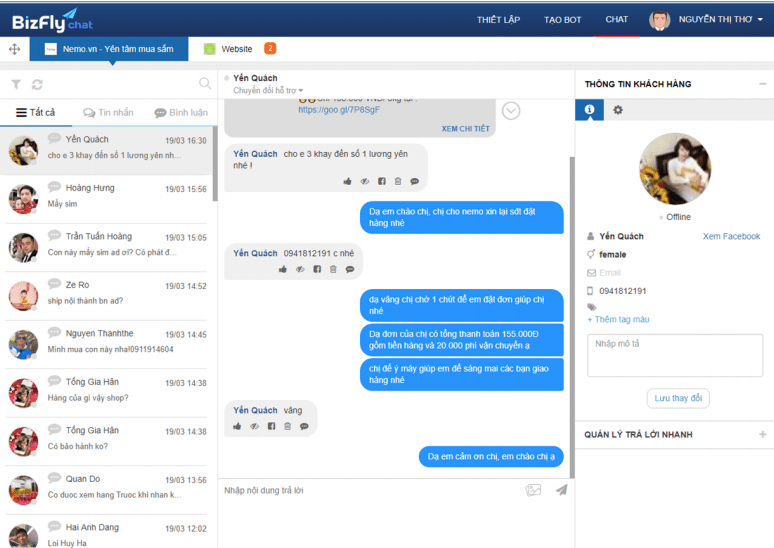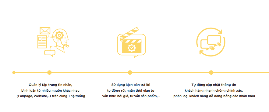+Quản lý tập trung tin nhắn, bình luận từ nhiều nguồn khác nhau như Fanpage, Website trên cùng 1 hệ thống