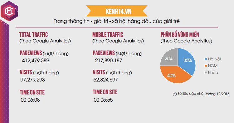 Một số những số liệu ấn tượng trên trang báo Kênh 14 như: