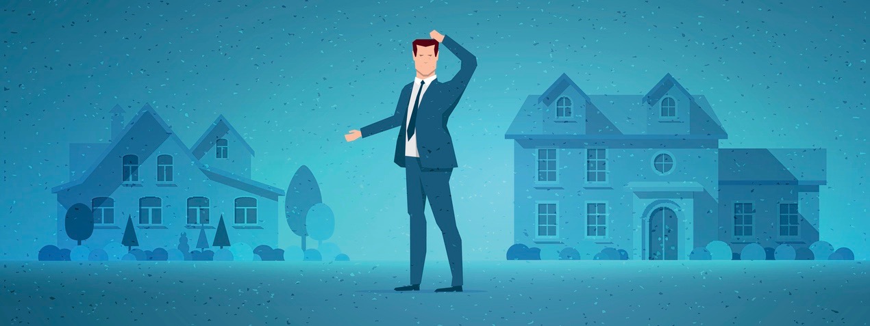 Business concept vector illustration. Real estate, investment opportunity, choice and to decide concept. Elements are layered separately in vector file.