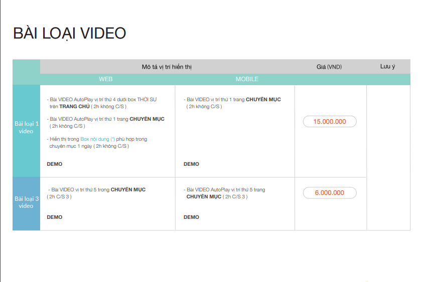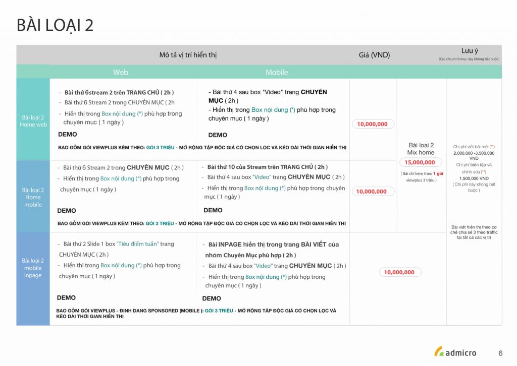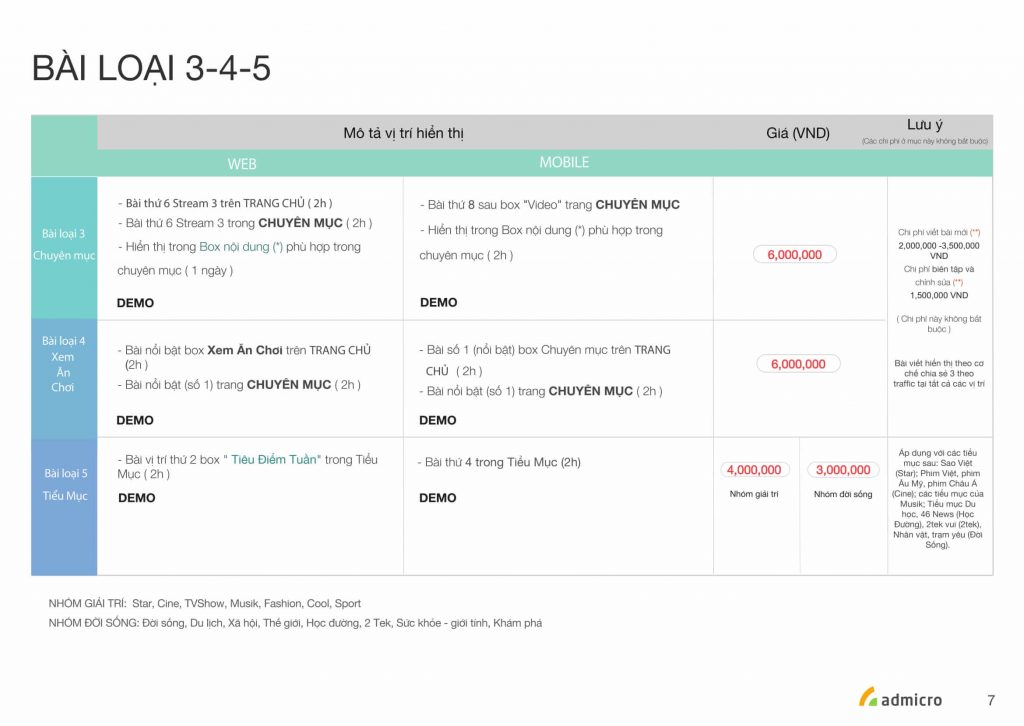 _Bài trong chuyên mục hiển thị tại vị trí đầu tiên sau box “Tiêu Điểm Tuần”, trôi dần theo thời gian. Sau 2h được đính tại 1 vị trí cố định như trên báo giá.