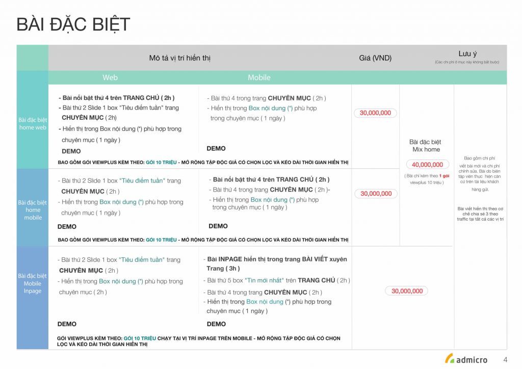 _Đối với các bài có vị trí đặc biệt do phóng viên chuyên trách của báo viết, chỉ áp dụng với những nội dung sau: