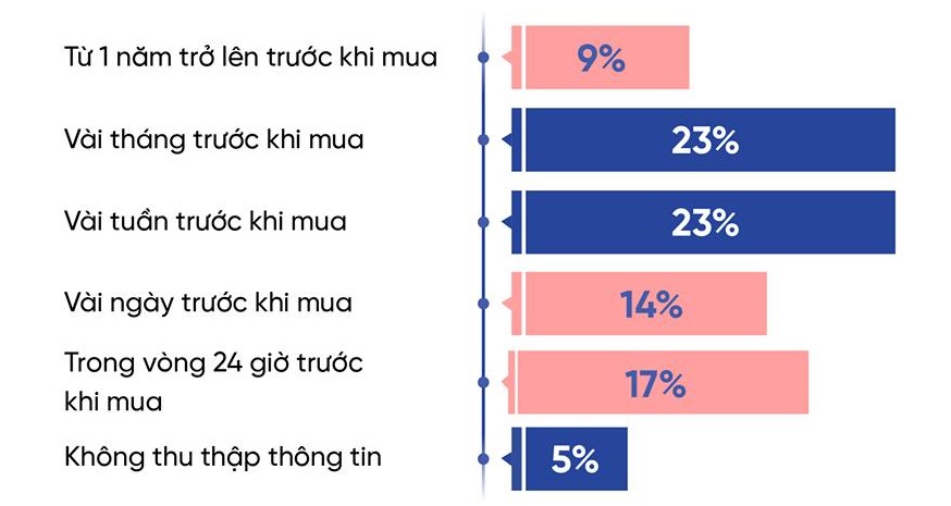 Khách hàng thường mất nhiều thời gian để thu thập thông tin, đánh giá trước khi quyết định mua. Thời gian “vàng” này kéo dài từ vài tuần đến vài tháng. Có 93% khách hàng tìm kiếm thông tin về bất động sản trước khi quyết định mua. Trong đó: