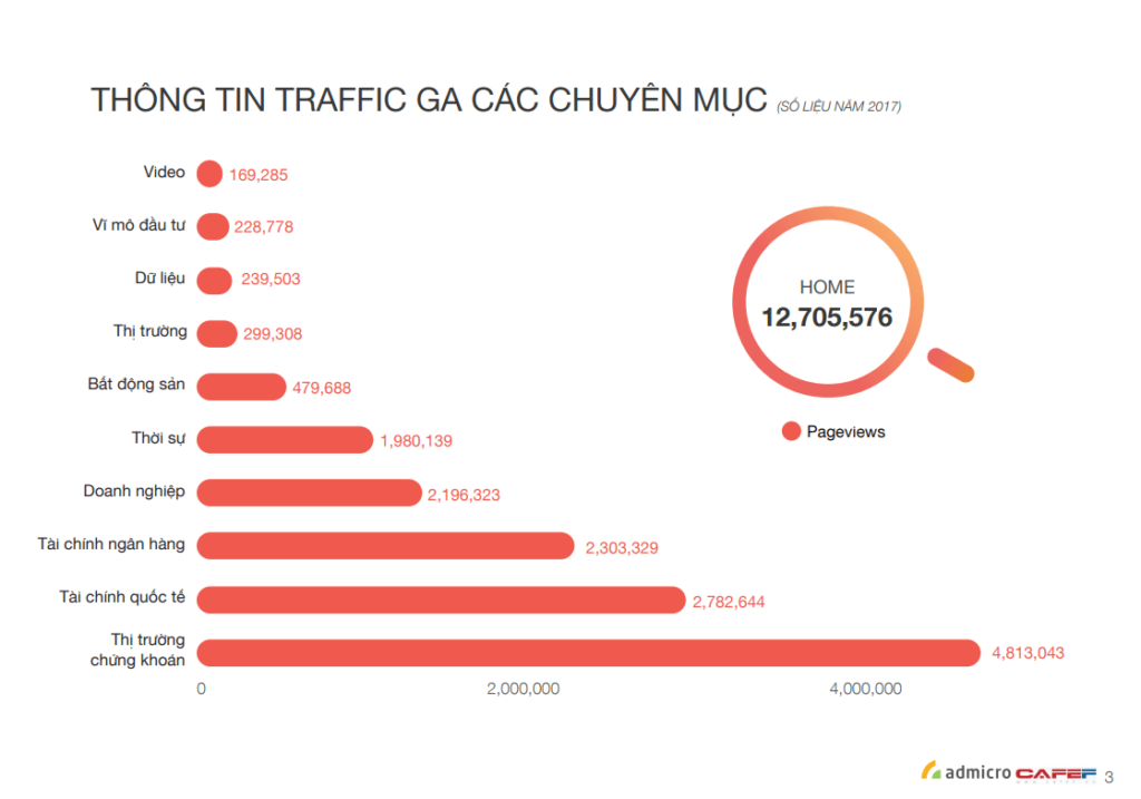 CafeF là một trang báo điện tử rất được nhiều người ưa thích tìm hiểu các vấn đề về kinh tế tài chính lựa chọn. Thêm vào đó, trang web này còn là sự lựa chọn tin tưởng của các CMO, CEO mong muốn cập nhật thông tin dẫn đầu xu hướng của thị trường hiện nay. Lượng Traffic của hãng ở mức khá cao và đạt ở con số ấn tượng: